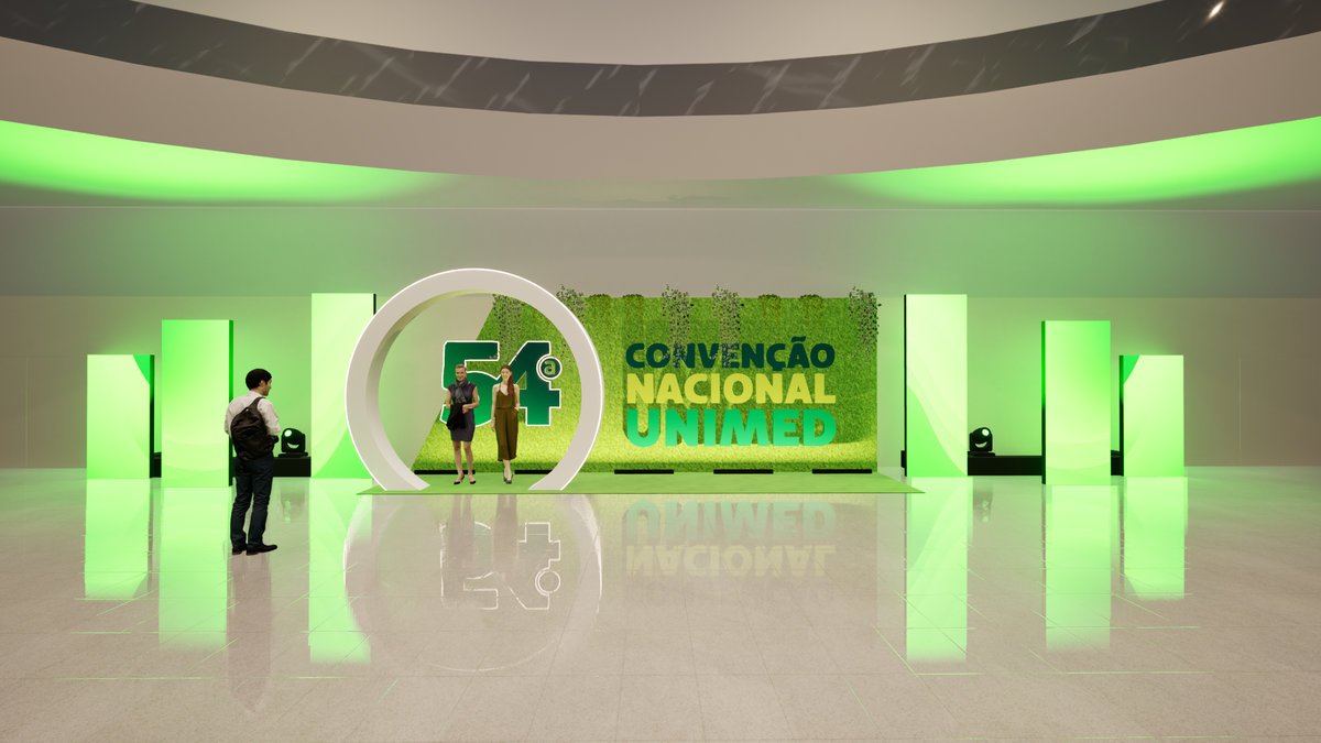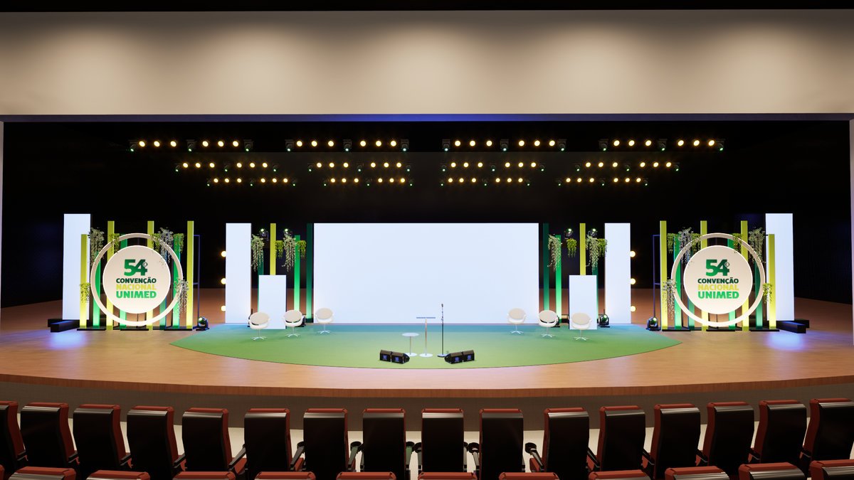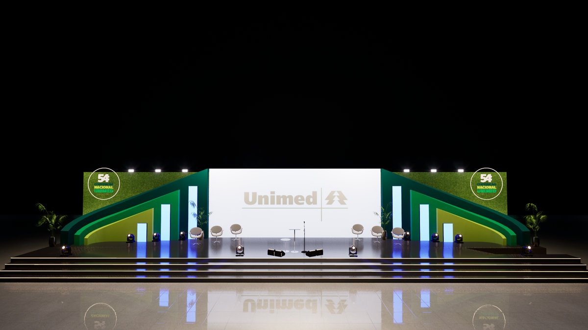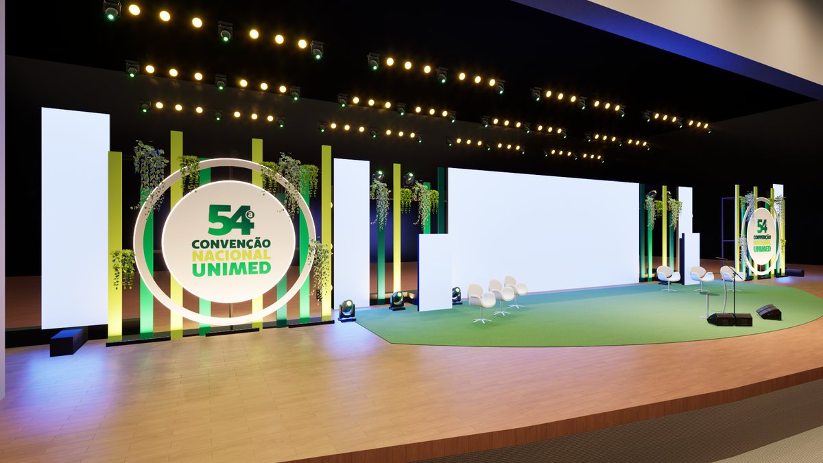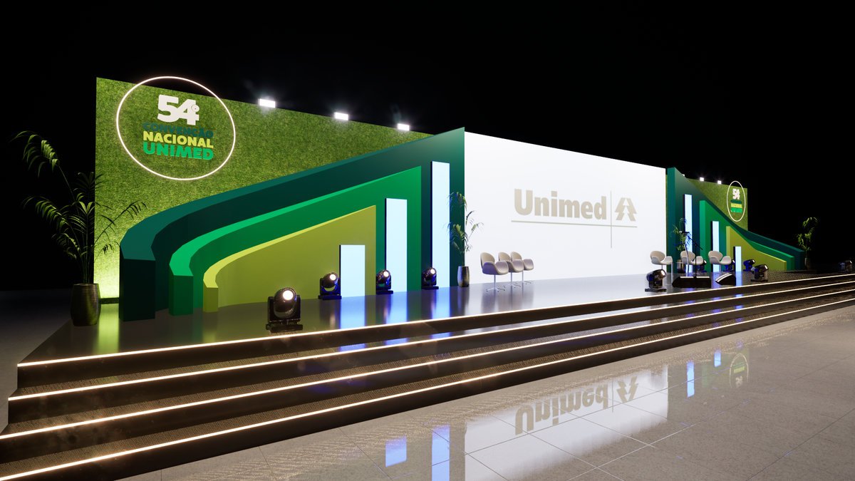Projeto de cenografia desenvolvido para a 54ª Convenção da Unimed, com foco em modernidade, tecnologia e sofisticação. A proposta valoriza o KV do evento e contempla palcos, espaços instagramáveis e áreas de apoio e serviços. (Parceria com a Kiara Eventos)