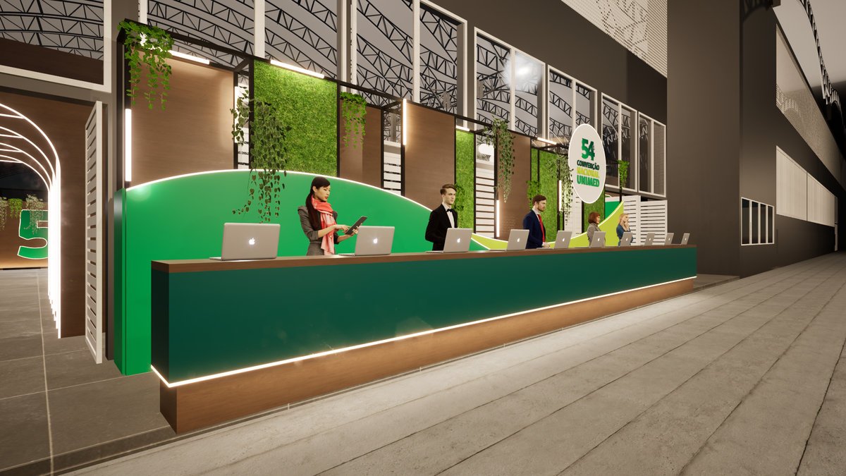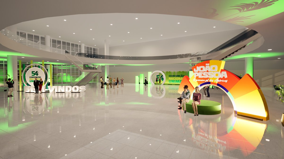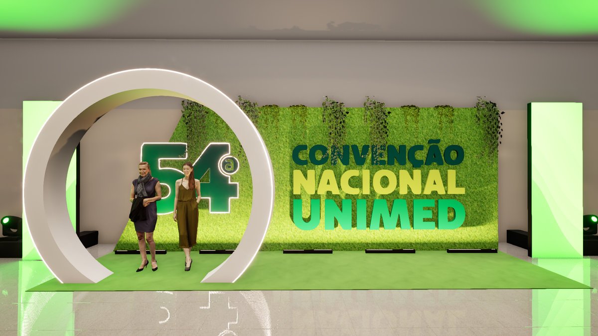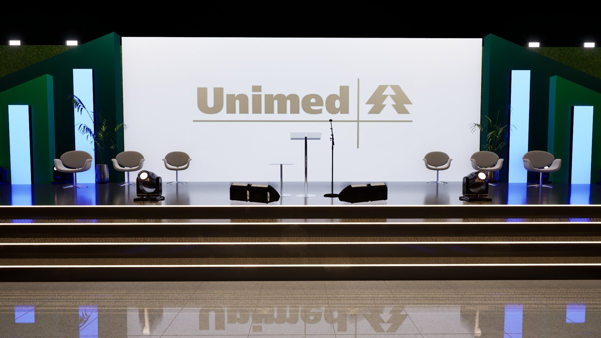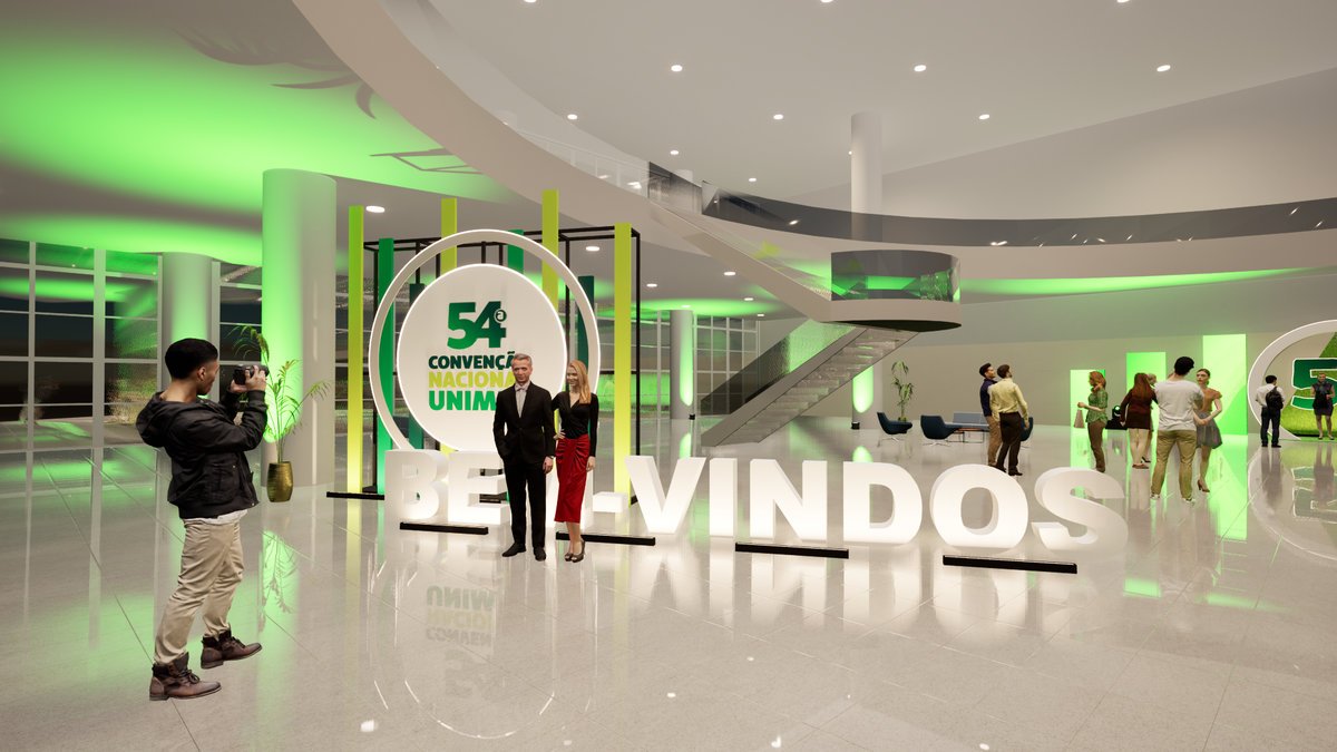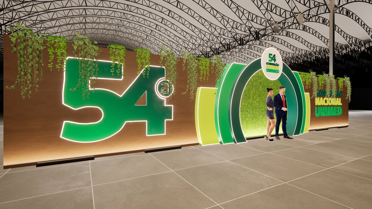 Projeto de cenografia desenvolvido para a 54ª Convenção da Unimed, com foco em modernidade, tecnologia e sofisticação. A proposta valoriza o KV do evento e contempla palcos, espaços instagramáveis e áreas de apoio e serviços. (Parceria com a Kiara Eventos)