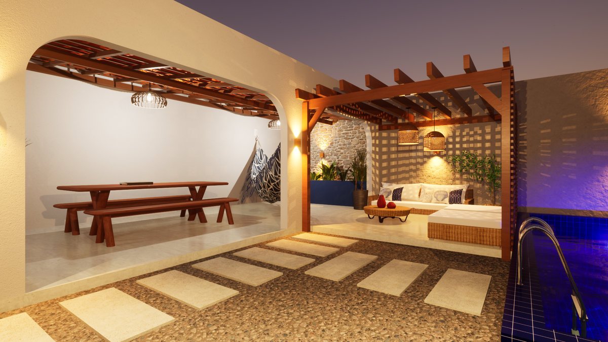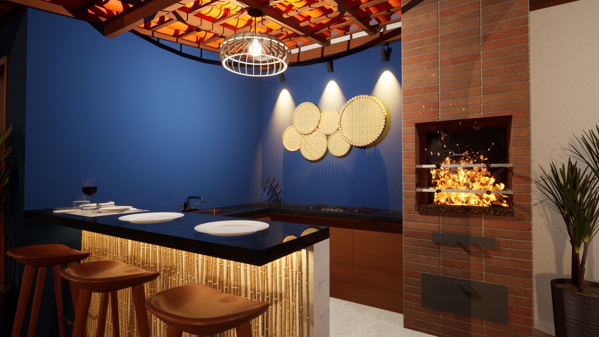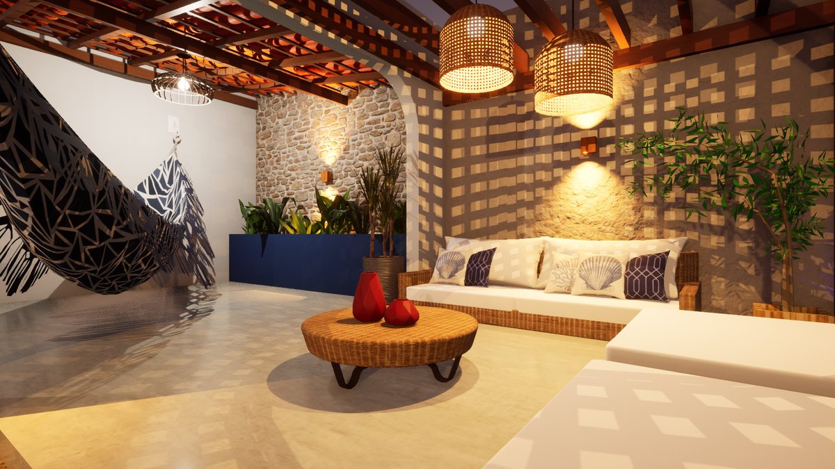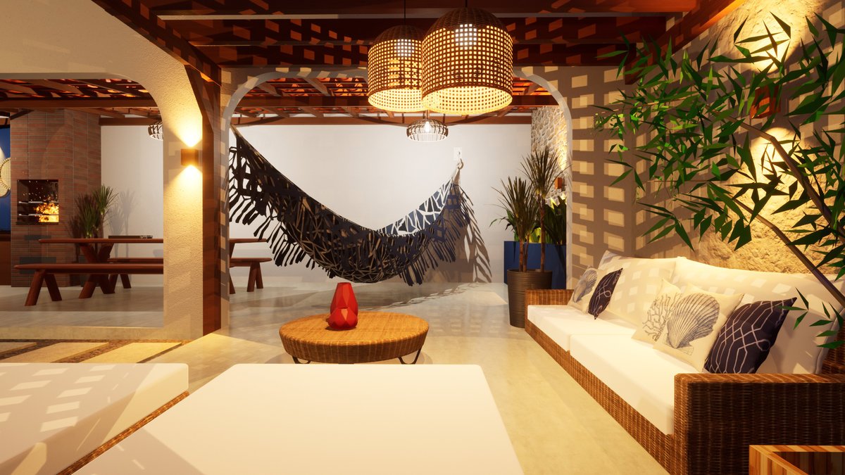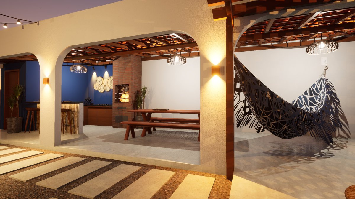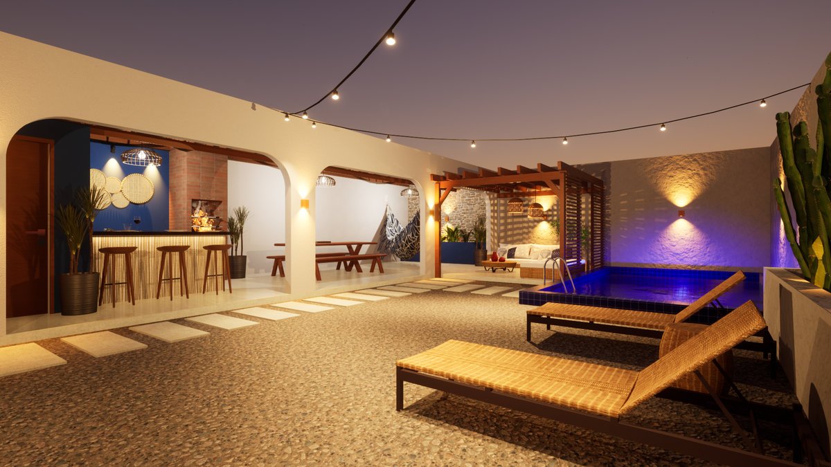Espaço Gourmet Projeto arquitetônico de espaço gourmet inspirado na arquitetura grega, integrado a elementos da cultura nordestina, buscando uma composição harmoniosa que une conforto, identidade cultural e sofisticação.