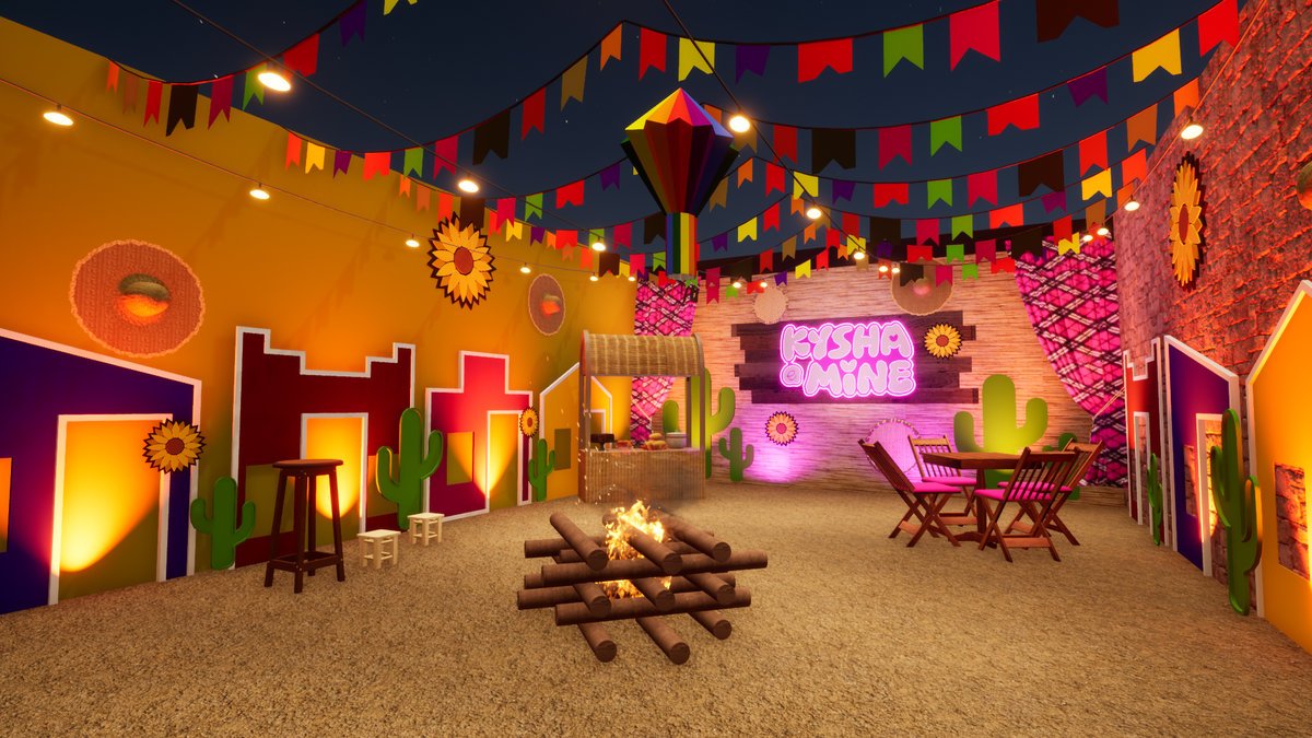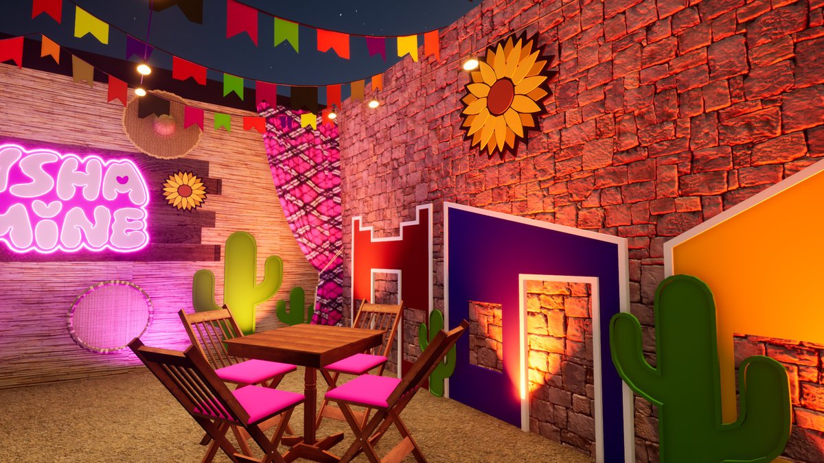 Proposta de cenografia para produção audiovisual da dupla Kysha & Mine, intitulada “Arraiá Duas Amigas”, lançada em junho de 2024. O projeto explora o conceito junino, combinando cores, texturas e elementos típicos das festas de São João. (Parceria com a Cenostart)